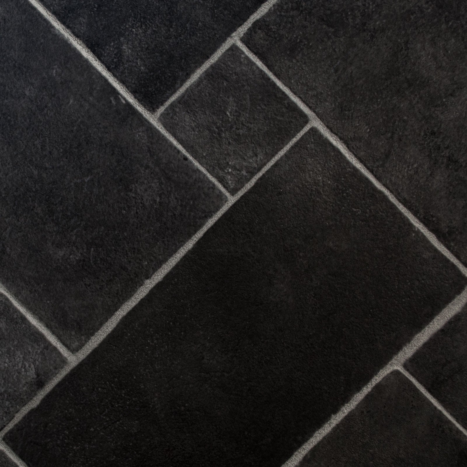This dark tile effect displays a variety of tile sizes and shapes, making any floor look like the real deal with its authentic pattern and style.