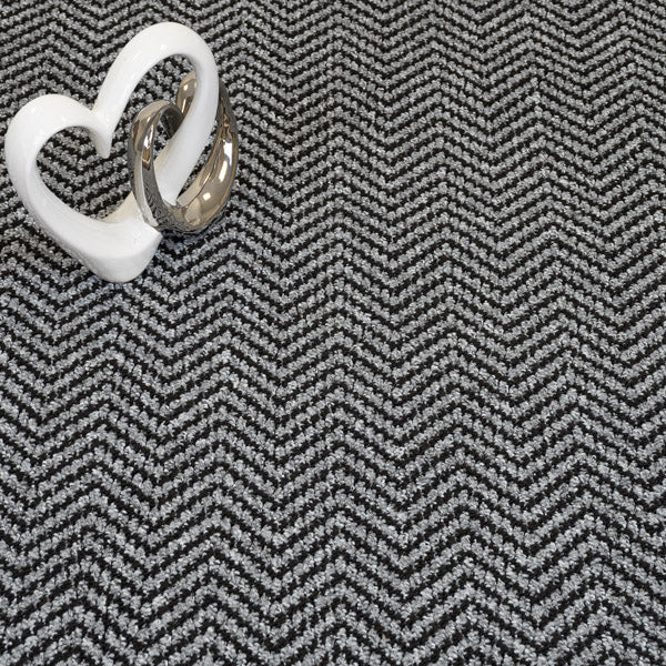 Help break up your room with this Anthracite 2027 Chile Herringbone Loop Carpet. and its intriguing pattern. The tight loop pile gives the pattern a clear and consistent look.