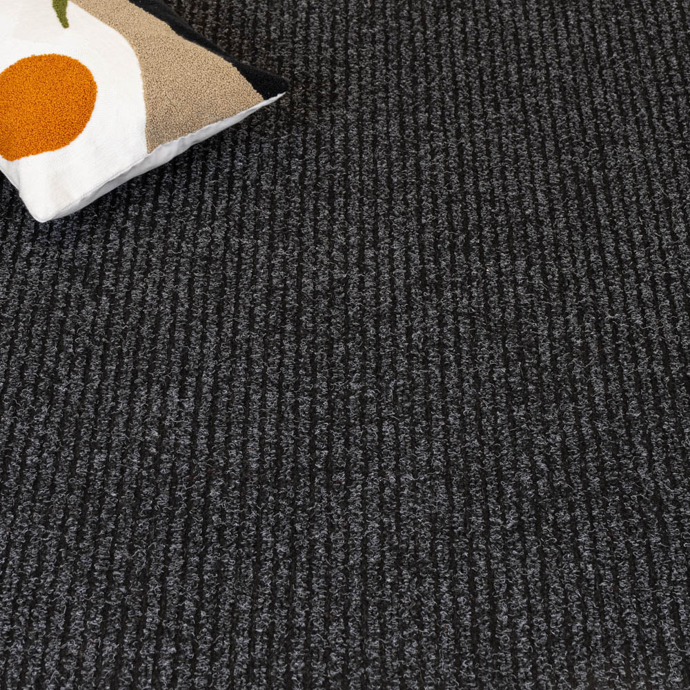 With its dark shade, this carpet has a dark grey hue with lighter highlights that helps it to conceal footmarks and dirt. The robust 4mm loop pile creates neat ribs that run down the length of the carpet.