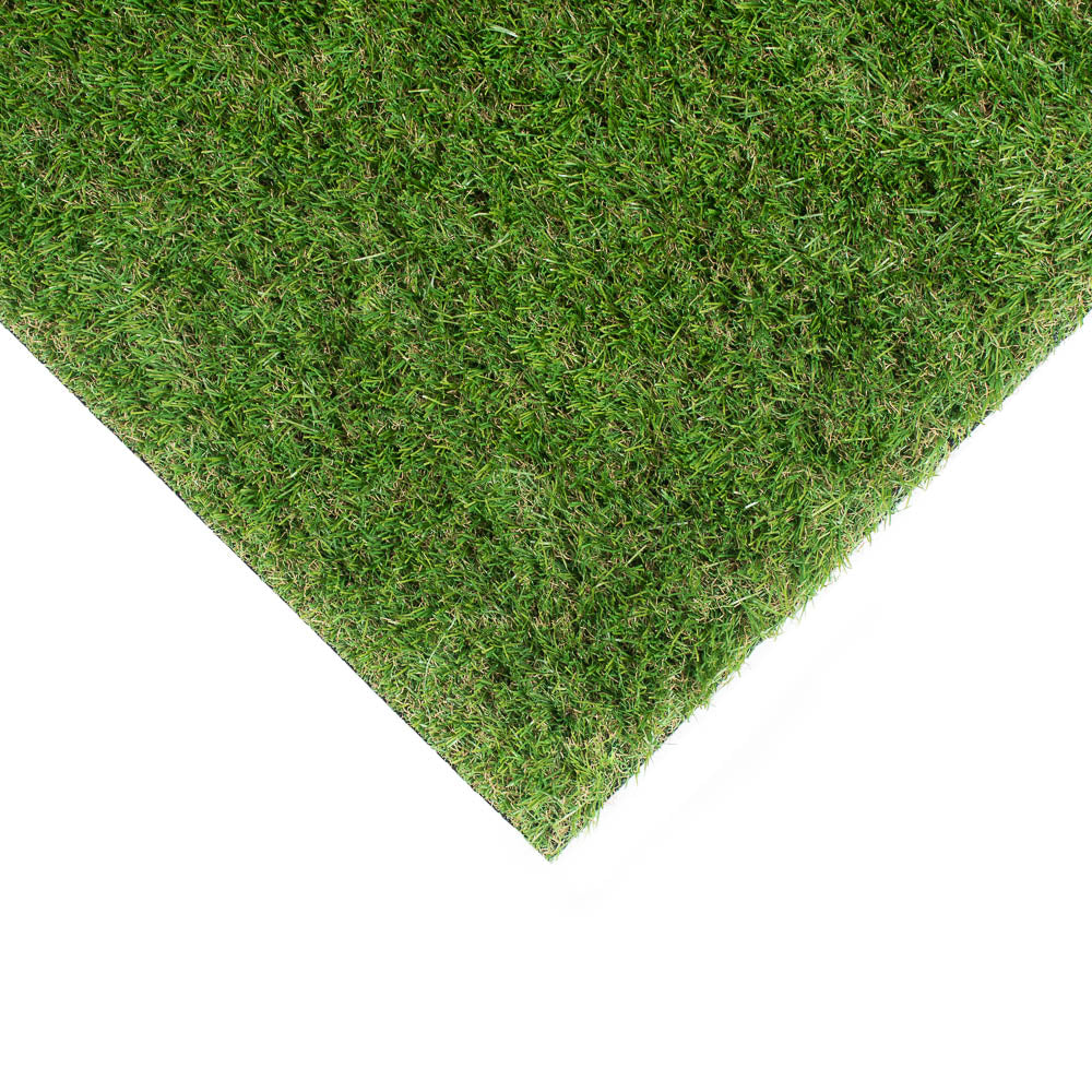A blend of green hues gives this grass natural look and is combined with curly base fibres for additional realism. ‘C’-shaped blades spring back from impacts quicker giving this grass and a bouncier feel. Its 35mm pile gives this grass a rich, established look that doesn’t require any mowing or watering and doesn’t produce any pollen.