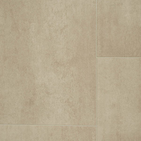 Get a realistic tile effect across your floor with this beautiful vinyl flooring. With its 33.3cm x 25cm tiles, light beige colour and white grout lines, this vinyl has a natural stone effect which looks amazing in both modern and traditional style rooms. This vinyl has a matt finish with impressions that follow the grout lines to create a brilliantly true to life look and a R10 slip resistance rated surface for a more comfy feel.