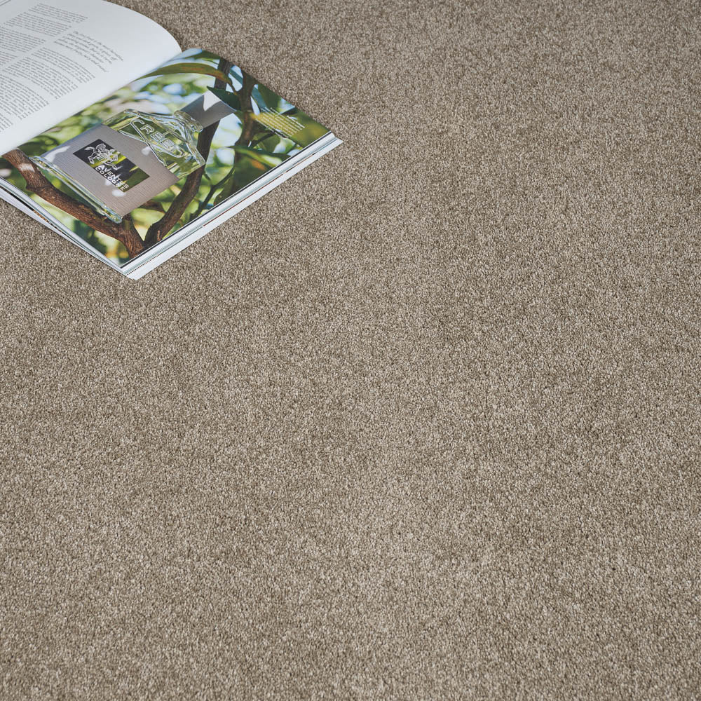 With its stunning 18mm thick saxony pile, this carpet adds a soft and comfy feel underfoot in living rooms, bedrooms and many other rooms. The grounding brown hue gives any room a welcoming look that pairs with many different colours. Stain resistant and dilute bleach cleanable polypropylene tufts make this carpet hardwearing and easy to take care of.
