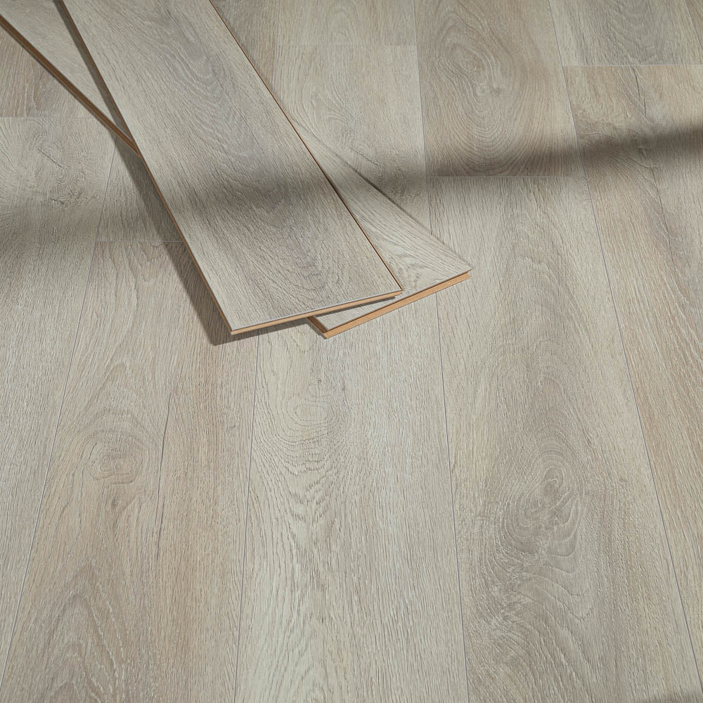 Discover an elegant wood style with this chic Berkshire Oak Mansion 8mm Laminate Flooring. and its pale grey tones with natural shading. Get a fantastically realistic impression with this laminate’s detailed design.