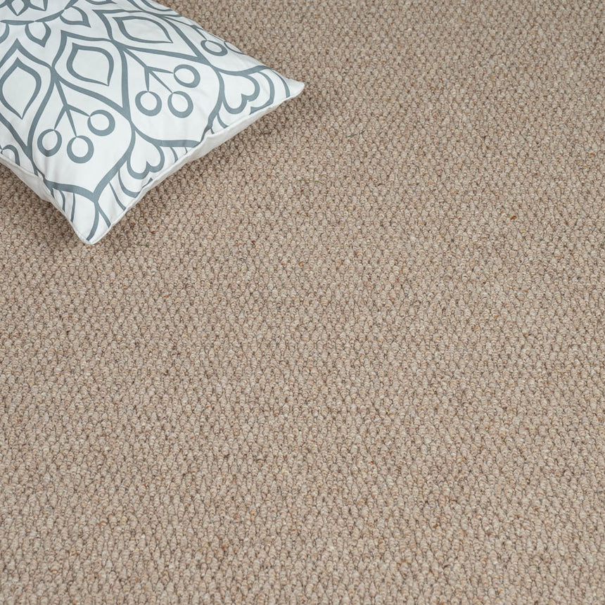 This fantastic carpet from Abingdon Flooring offers your floor a combination of durability and luxury. The 5.9mm loop pile gives this carpet a springy feel underfoot and bounces back easily from footfalls even in heavily used areas like halls and stairs. Its natural wool loops add a warm beige hue with a natural flecked look and are also durable, hypoallergenic and moth resistant, making them ideal companions for many living rooms, bedrooms and more.