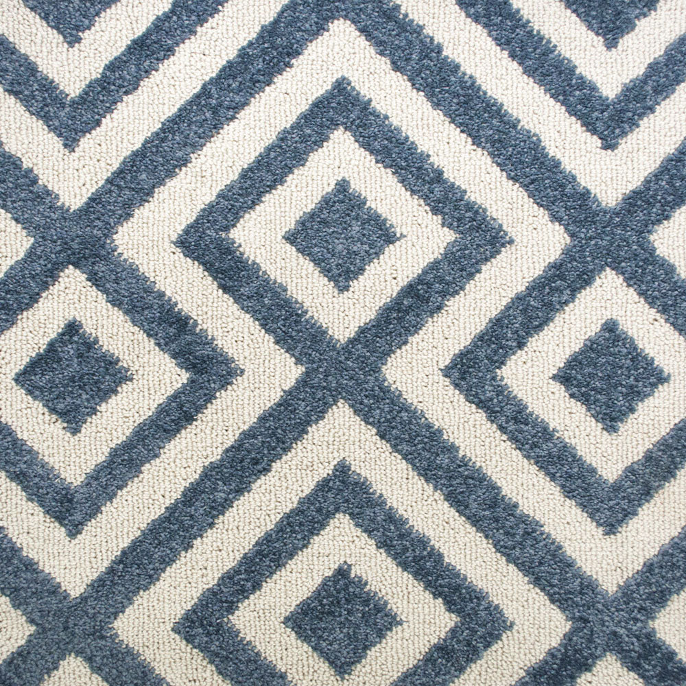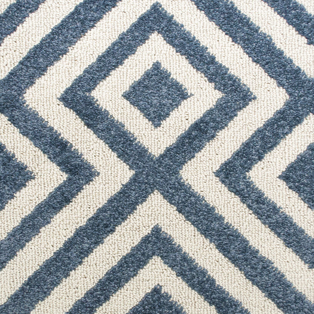 This is a visually striking design with a cool modern pattern. The pile is in a cut & loop style, giving a contrast to the different colours. This also gives a nice texture difference across the two colours. The pattern itself is in a bold, modern style, with thick lines of contrasting colour in a geometric diamond shape.