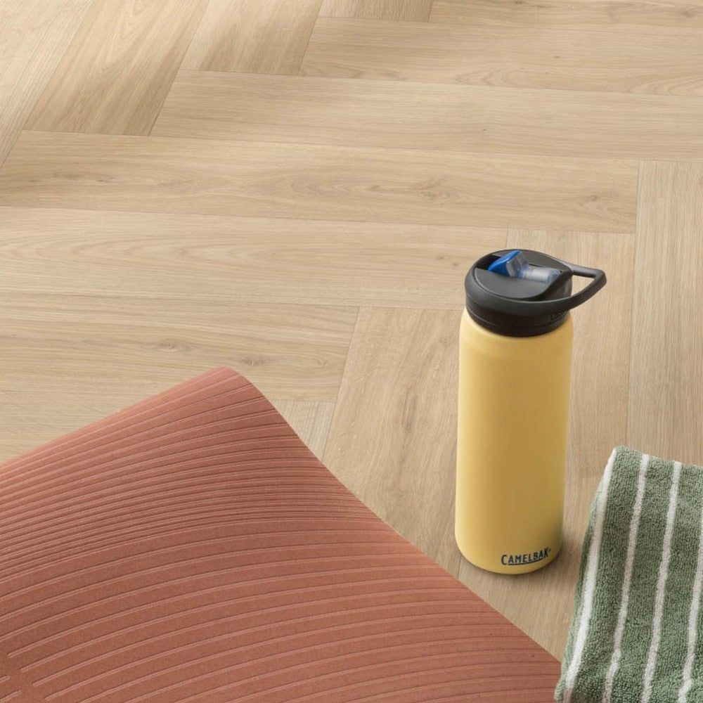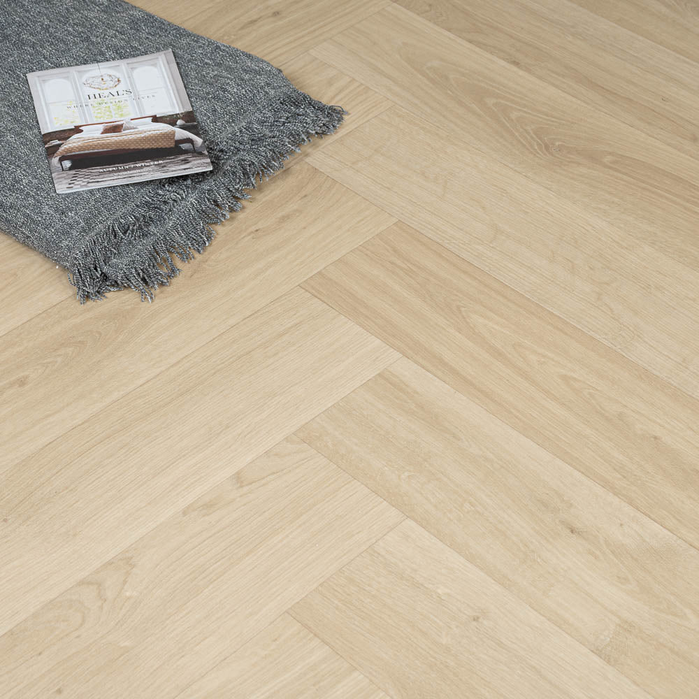 With its large 14cm x 70cm parquet plank pattern, this vinyl creates a bold style across your floor with a classic herringbone layout. Its beige tones give this vinyl a light natural look that complements a variety of room styles and furnishings. A matt finish and lifelike wood grain offer an even more realistic appearance.