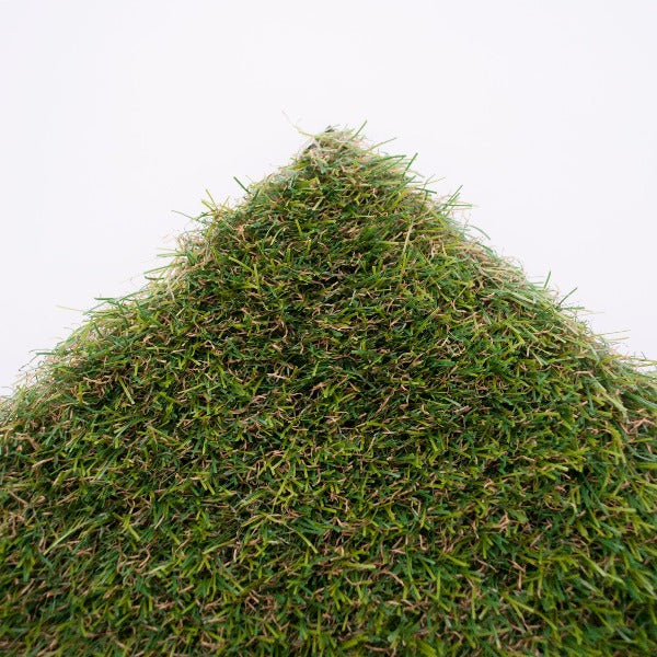 This realistic artificial grass has a vivid green pile with a mix of tones that create a natural appearance. These straight fibres fan out from each tuft to create a varied, plush pile across the surface. A soft brown base has been added to add extra realism as it resembles old growth. The curled fibres also support the straight green fibres, and give a bouncy, springy base that feels great underfoot! This also preserves the appearance of your lawn, helping it stay standing up.