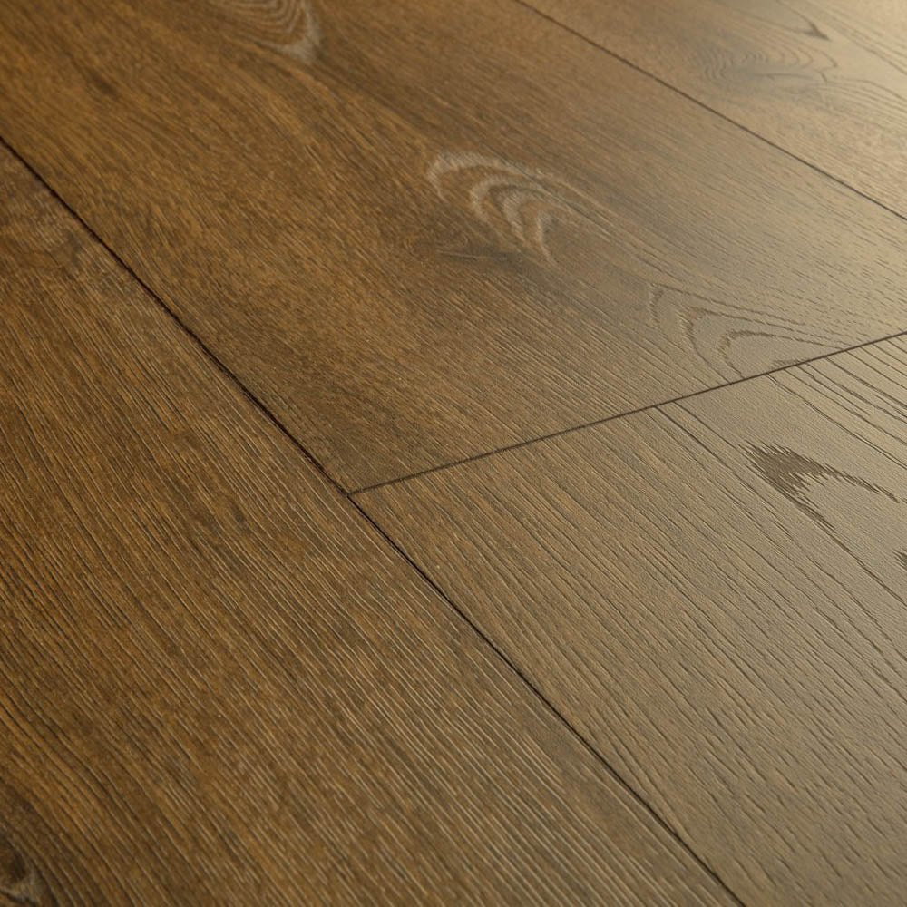 Warm and inviting, this Cocoa Brown Oak CLM5793 Classic 8mm Laminate Flooring adds a cosy look to any home. This Quick-Step laminate adds a beautiful blend of luxury look and practical construction.
