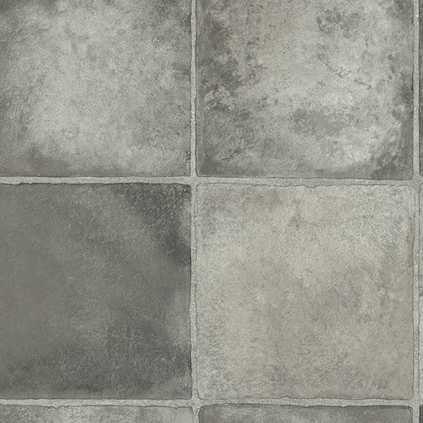 Each tile in the pattern features a mix of different shades of grey and a faded stone effect, giving you a very versatile floor that is easy to match to different colour schemes and furnishings. The embossed surface and matt finish make this vinyl look even more realistic.
