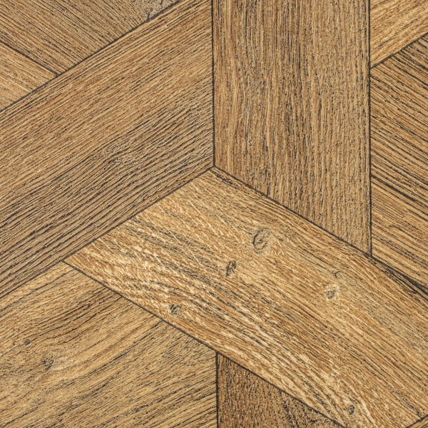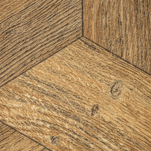 This wood style vinyl has a stunning hexagonal parquet design that uses 16.6cm x 100cm plank pattern. The realistic wood effect has a detailed grain design and a matt finish with an R10 slip resistance rating. You can cut this sheet vinyl down to fit your room exactly making it easier to fit than real parquet.
