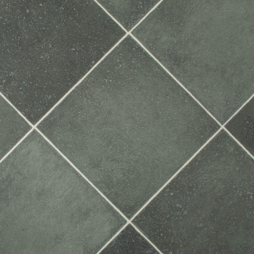 This natural effect stone tile design uses shades of warm and dark grey to give this pattern a realistic look. Impressions on the vinyl’s surface matching the pale grouting lines in the design add an even more lifelike appearance. The R11 slip resistant rating and matt finish give this vinyl a comfy feeling underfoot and the felt backing helps it to feel warmer and more cushioned than real tiles.