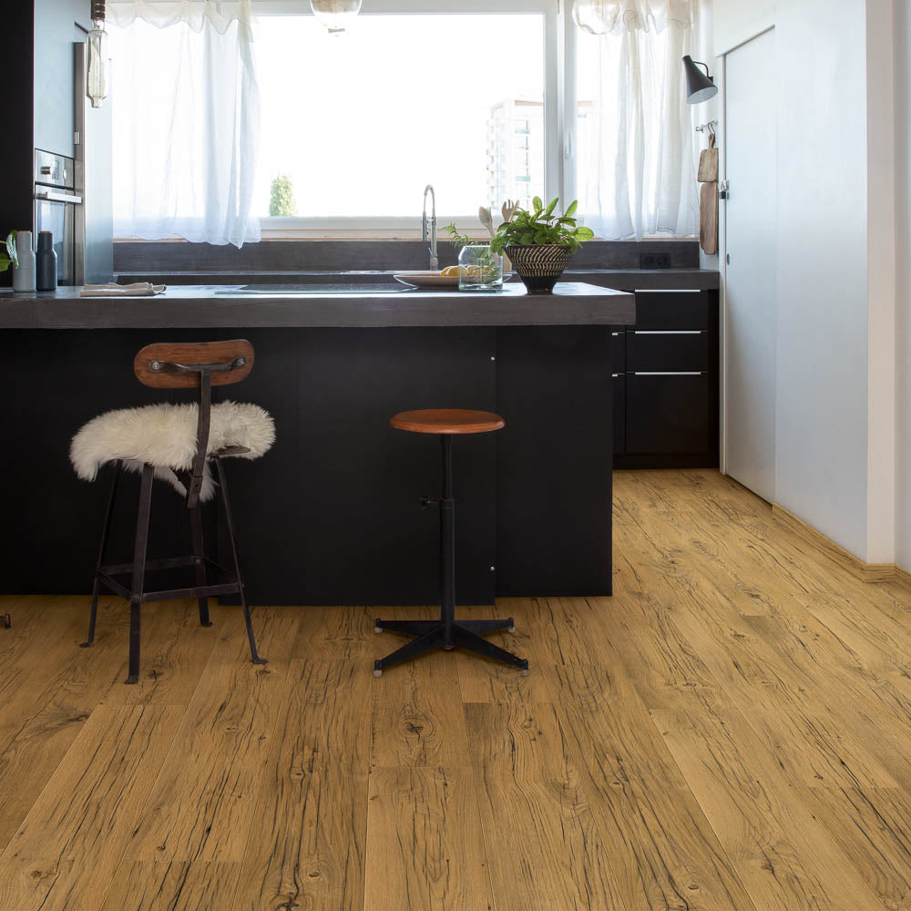 Enjoy a wood style floor in bathrooms and kitchens with this Quick-Step laminate's waterproof surface. This laminate is AC4 rated and comes with Scratch Guard technology that helps prevent scratches, even in busy areas like hallways and it is also compatible with underfloor heating. Connecting this laminate is easy with its simple Uniclic system.