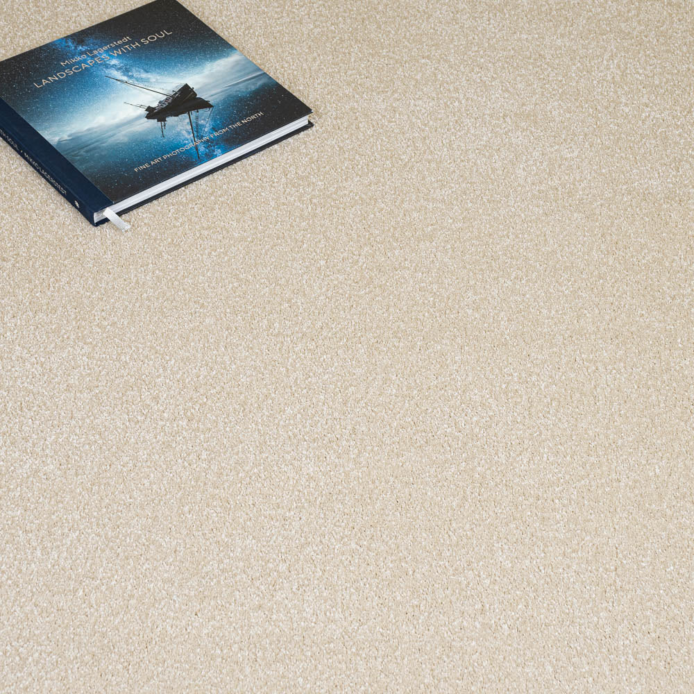 Add a stunningly soft look with this light Cream Beige Lyra Saxony Carpet. This exceptional saxony carpet blends a cosy and dense feel with a pale elegant appearance.