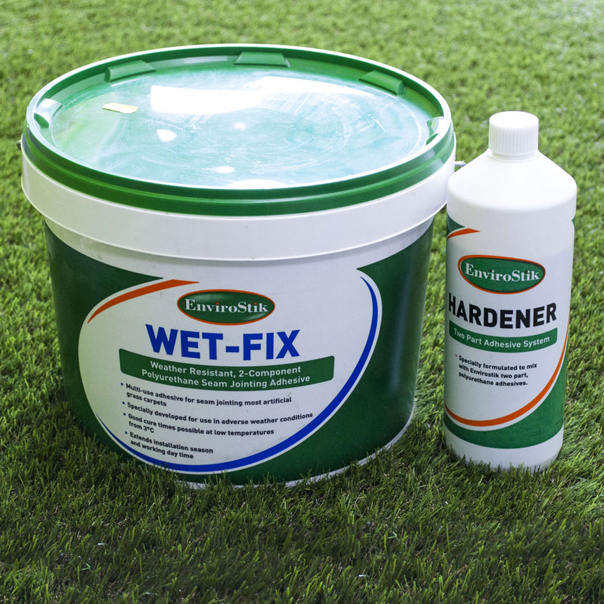 Our great value adhesive set contains EnviroStik Wet-Fix Adhesive 5kg along with the liquid Hardener 0.5kg or EnviroStik Wet-Fix Adhesive 10kg with 1kg liquid Hardener.