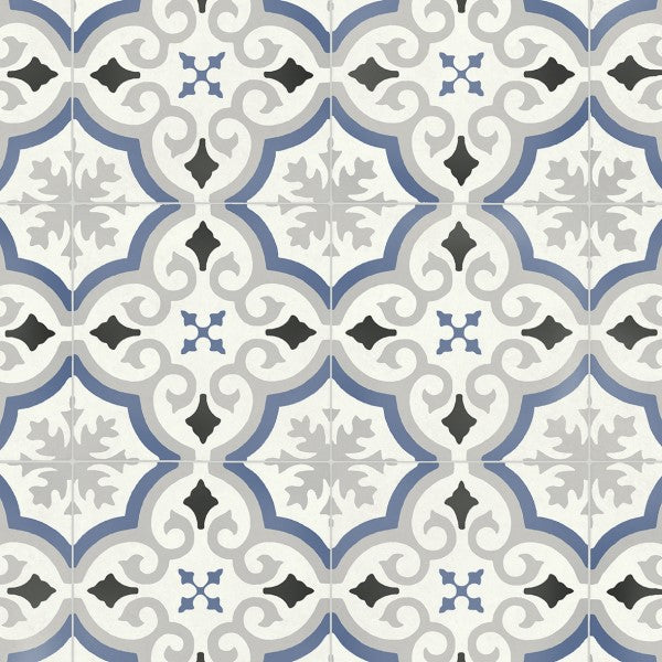 Its mix of light grey, blue and black gives this vinyl a beautiful look that suits a multitude of room styles and shades. The pattern also includes implied 20cm x 20cm tiles with grey grout lines that create the brilliant tile effect. With its matt finish, grout impression and R10 slip resistance rating, this lino has a realistic look and a comfy feel.