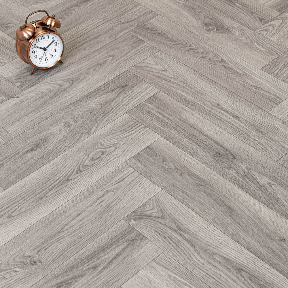 The full Vintage Herringbone Vinyl Flooring range features a variety of shades and patterns.