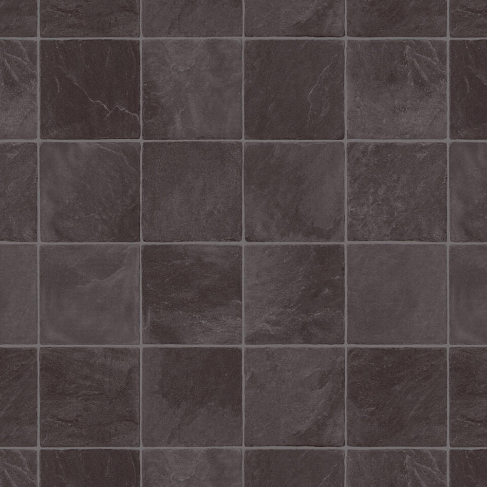 The dark 25cm square tile design has an irregular grouting line and detailed stone effect that gives it an antique look that is perfect for kitchens, bathrooms, halls and many more. This vinyl flooring comes with an R10 slip resistance rating and can be easily cleaned, ideal for any busy home.