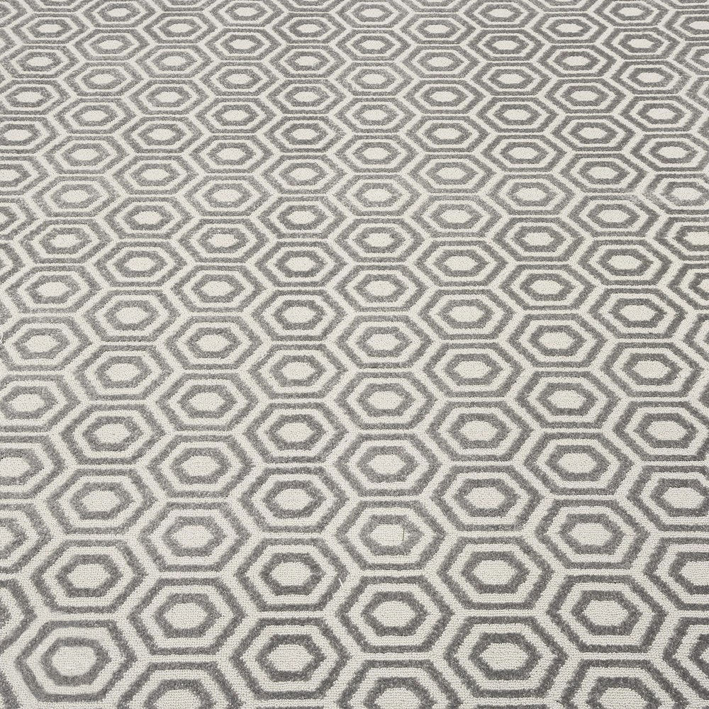 This design is made using a cut & loop process, where the light grey colour is made of a twist pile and the cream is a loop. This gives definition in the pattern, giving a real statement look to your room!