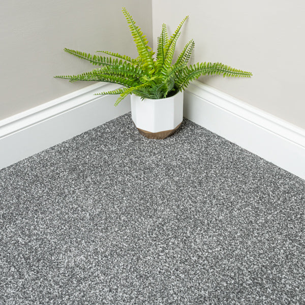 This Grey Miro Saxony Feltback Carpet is a fantastic entry level saxony carpet with a lovely light grey hue. Its mix of light and warm grey tones gives this carpet its subtle heathered effect.