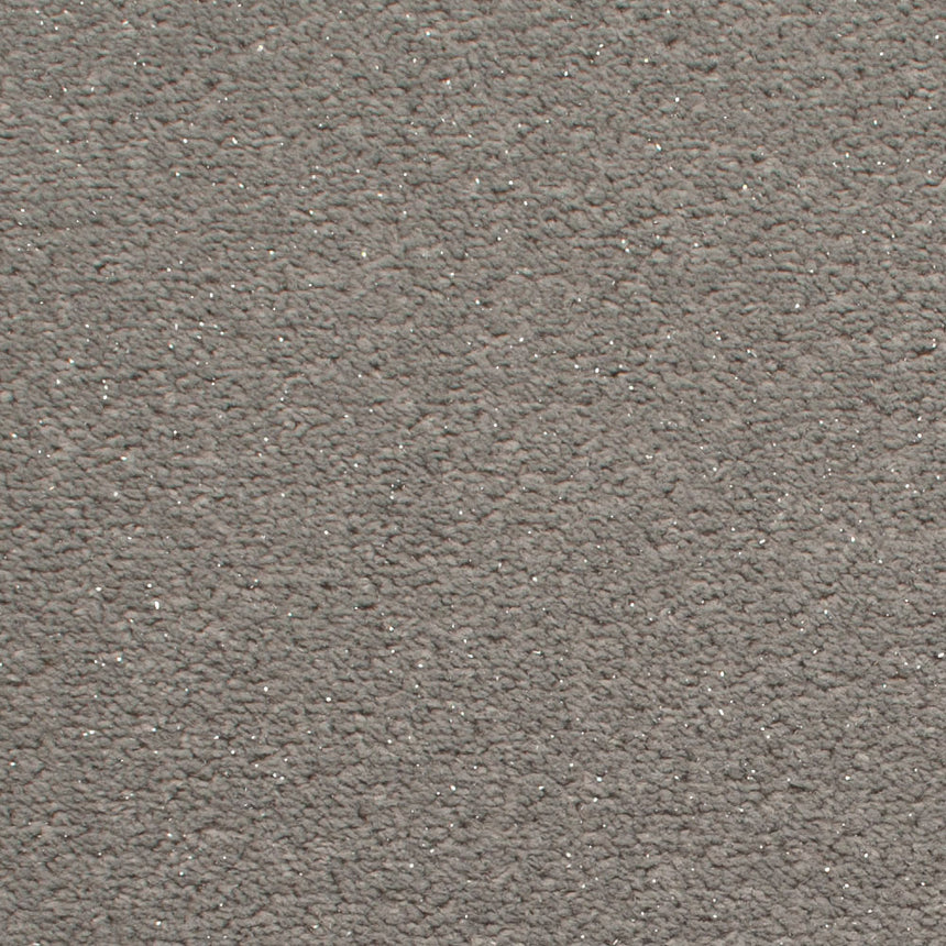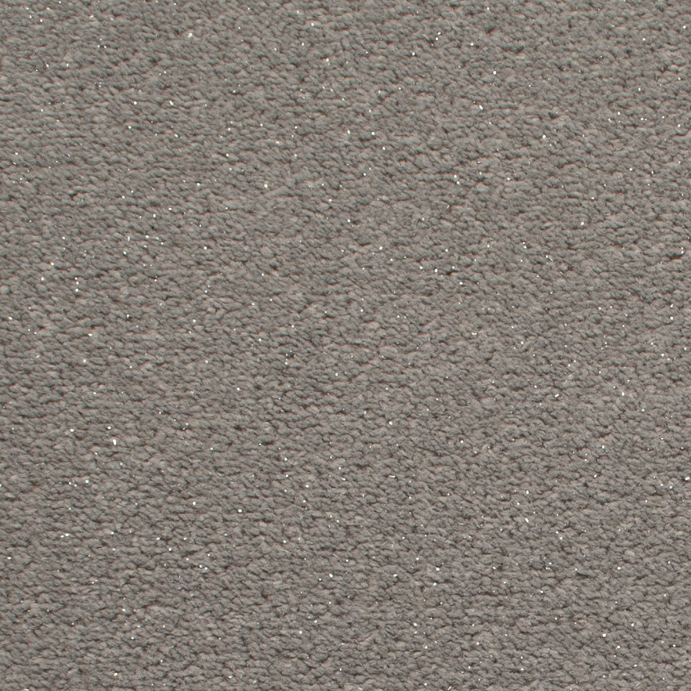 The sparkle is provided by a silver foil fibre in each tuft, giving a subtle, varied appearance. The light grey colour is complimented by this effect, creating a shimmering silver look.