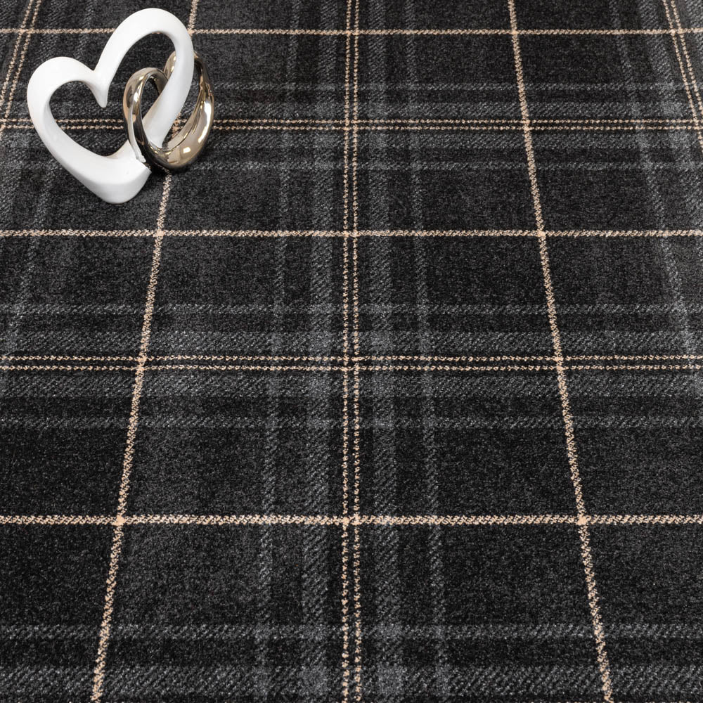 This dark Grey Stone Midas Tartan Wilton Carpet comes with a beautiful mix of beige, grey and black hues. The distinctive tartan design had a clear and crisp pattern with contrasting lines and background colour.