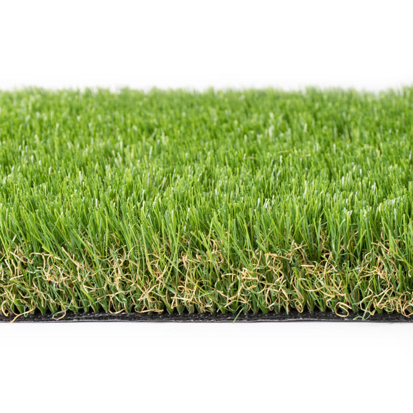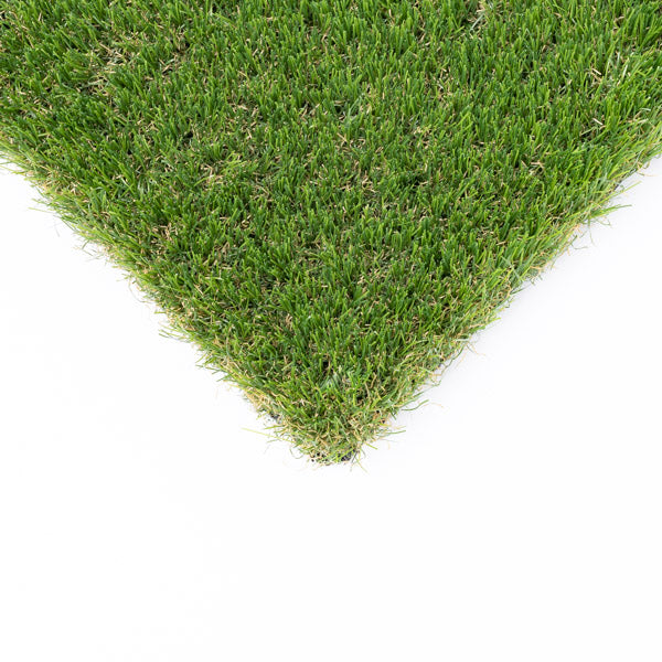 With a variety of shades of green and brown, this artificial turf creates a fantastic 40mm thick pile with an established look across your lawn. The mix of straight spined blades and curled base fibres adds a natural effect while also increasing this synthetic lawn’s durability. There is no need to mow or water this fake grass to keep it looking spectacular all year round and it doesn’t produce any pollen which is great for those with allergies.