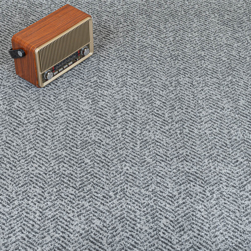 The light grey and dark grey herringbone pattern gives this carpet a distinctive appearance that suits a host of colour and styles. Its polypropylene tufts make it easy to take care of this carpet as it is dilute bleach cleanable, stain resistant and hardwearing. As well as being a great practical choice this carpet’s 9mm pile feels exceptionally soft underfoot.