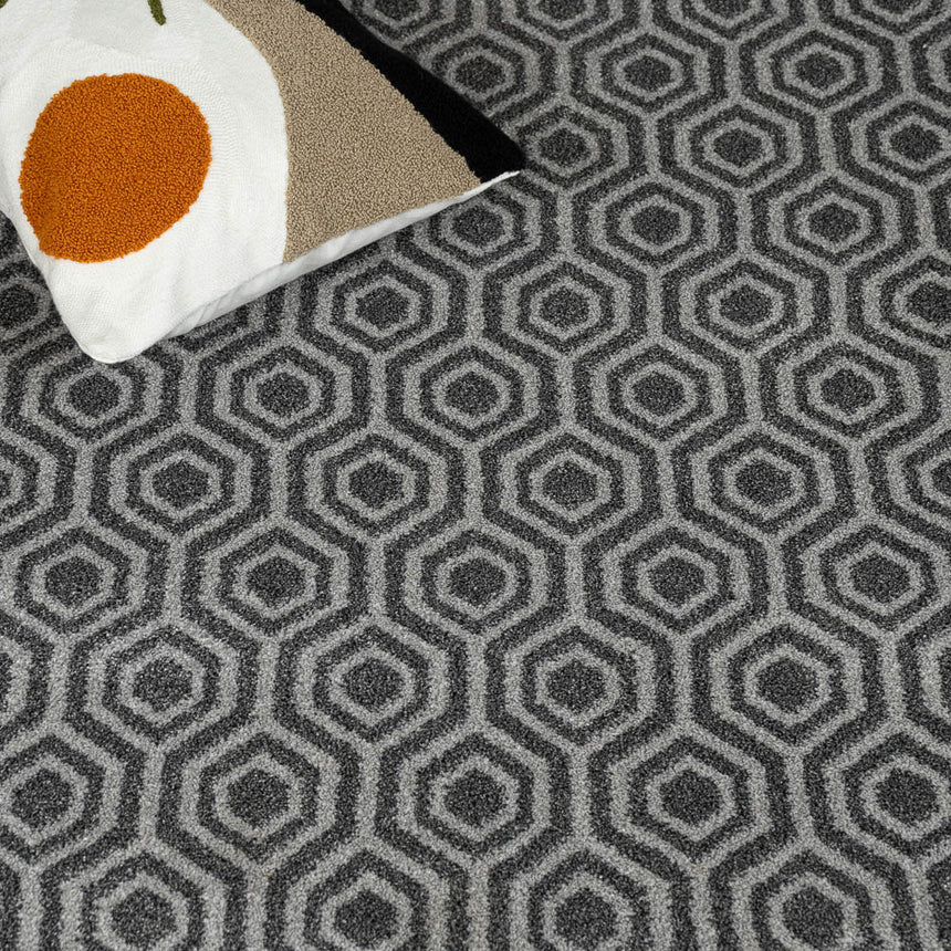 With its versatile and complementary shades of grey, this carpet is a stunning companion to a host of room colours and furnishings. The 9mm pile creates a soft feel to the touch as well as contributing to its clear and easily readable motif. A great addition to bedrooms, living rooms. halls and more, this carpet’s pile is made from stain resistant and dilute bleach cleanable polypropylene yarn.