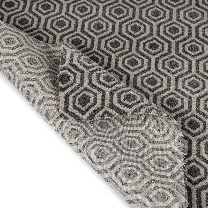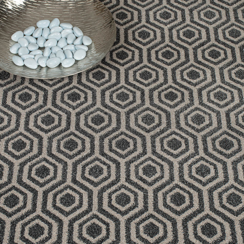 Contrasting warm and dark grey tones, creates a fascinating hexagon design across this Hexagon HEX09 Horizon Wilton Carpet. With its versatile colours, this carpet works with a wide range of room styles and shades.