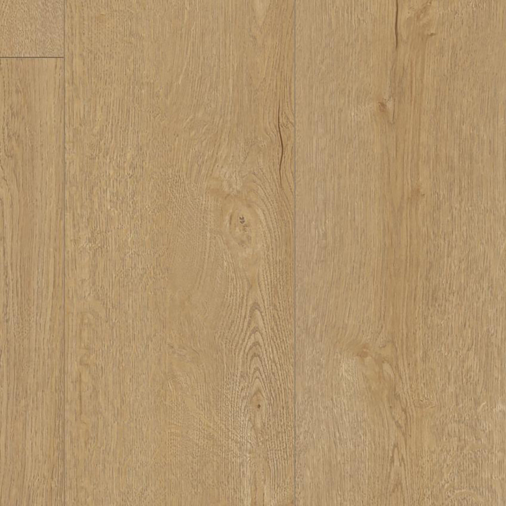 Its cosy beige shade gives this laminate a brilliantly cosy look that is complemented with a paired embossed surface. The 1380mm x 193mm planks with their bevelled edges come with an elegant v-groove in the join between planks.