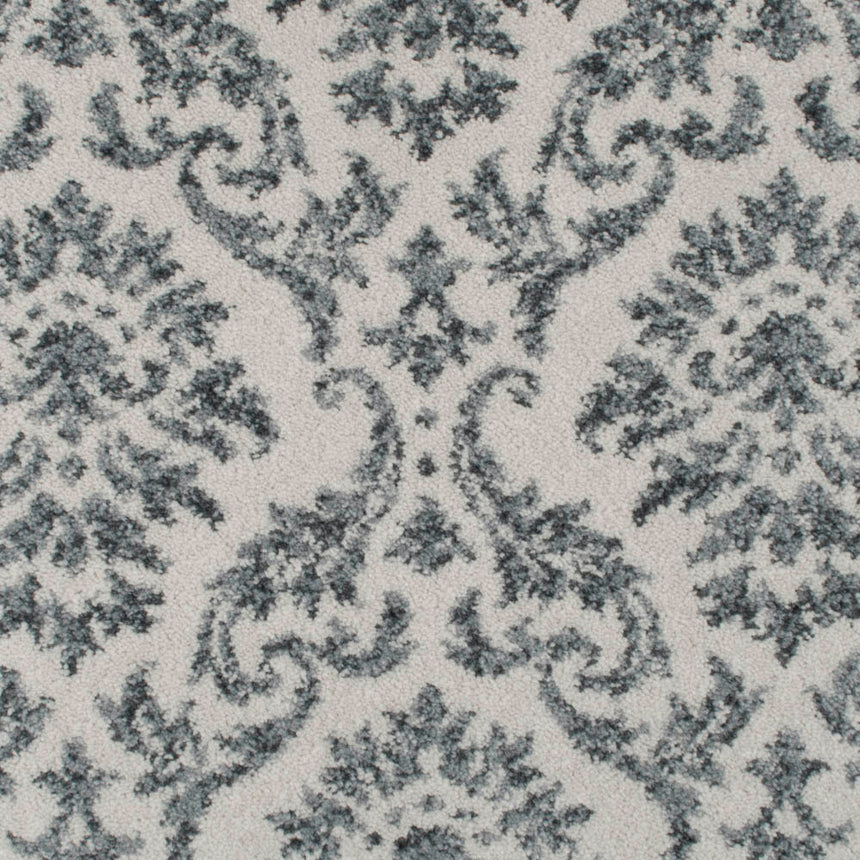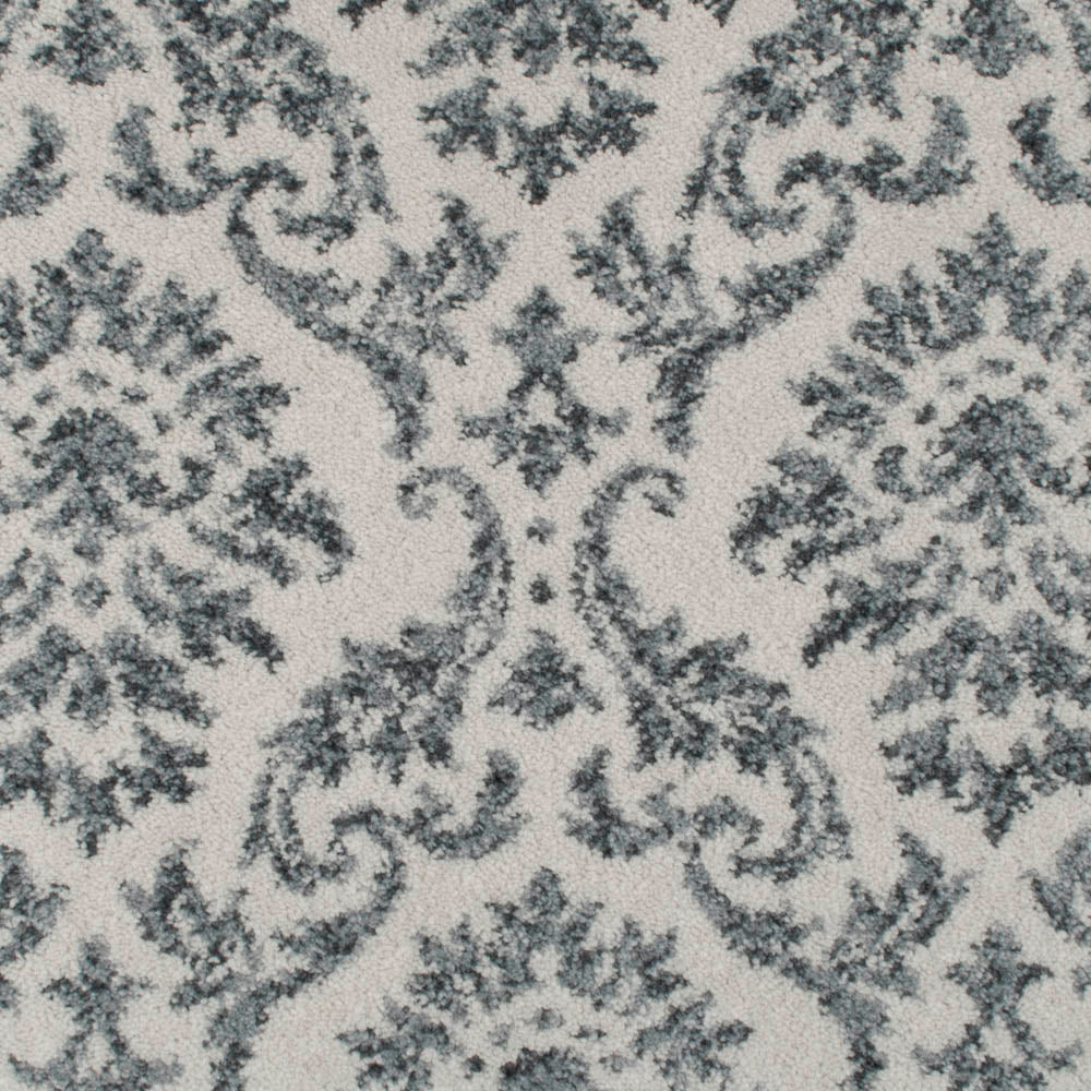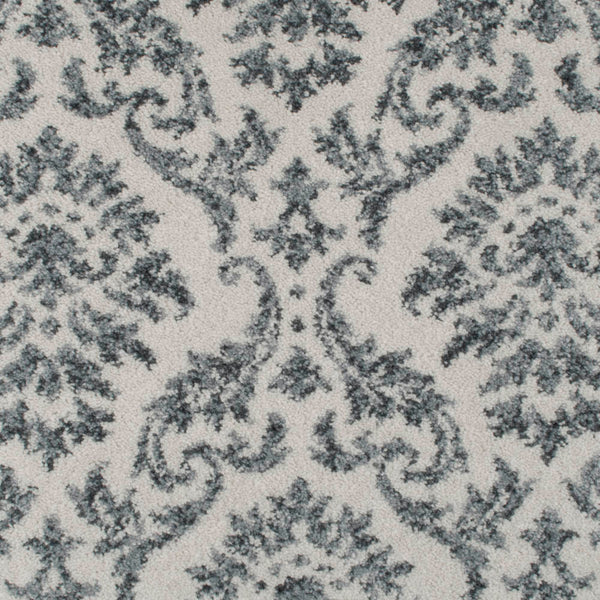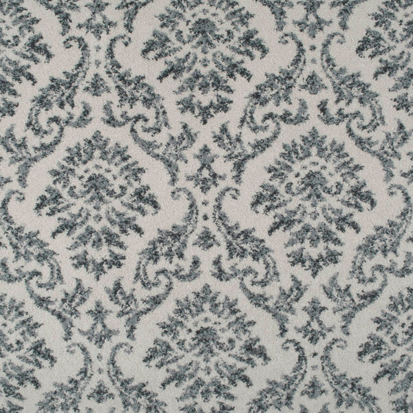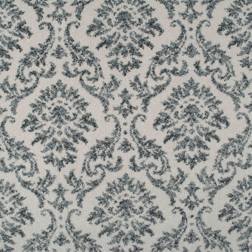 Get a traditional look in your living room or dining room with the Ivory Grey Damask Queensville Wilton Carpet.
