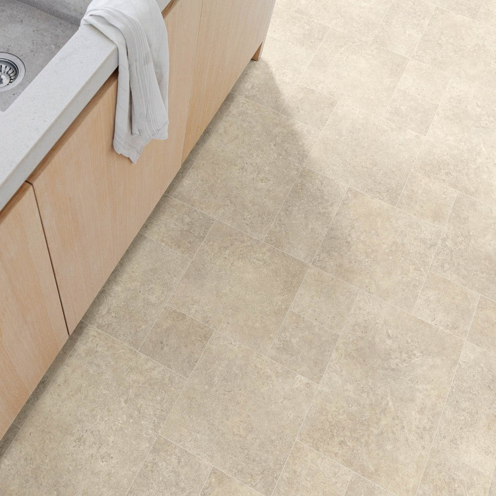 With its mix of different tile sizes this Ivory Moon 533 Ultimate Stone Vinyl Flooring’s pattern adds a creative look to your room. Between its welcoming shades and lifelike appearance, this vinyl is a great addition to any busy home.