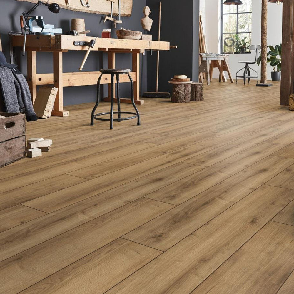 Add a classic style with this Jalon Oak Robusto Villa Laminate Flooring and its cosy rustic appearance. Its cosy beige and brown tones add a touch of warmth across your floor.