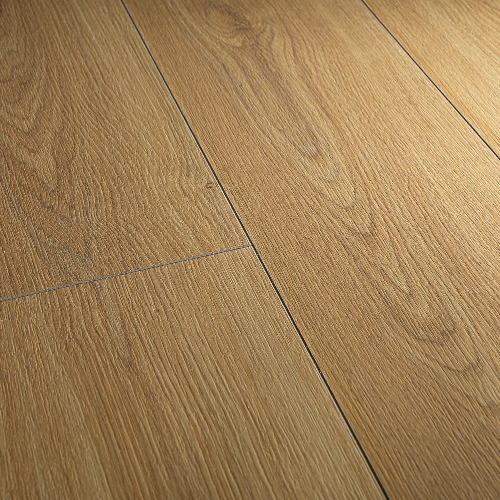 Add a natural wood style with this Kent Oak Palace 12mm Laminate Flooring and its beautifully detailed pattern. The warm brown hues give this laminate a cosy ambience and complements modern and traditional rooms alike.