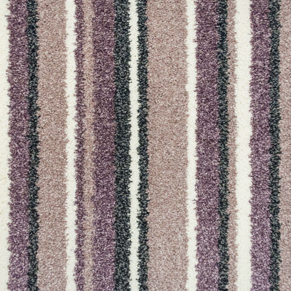 The Lavender Noble Saxony Collection Carpet has a warm purple stripe with a soft purple and contrasting greys and creams.