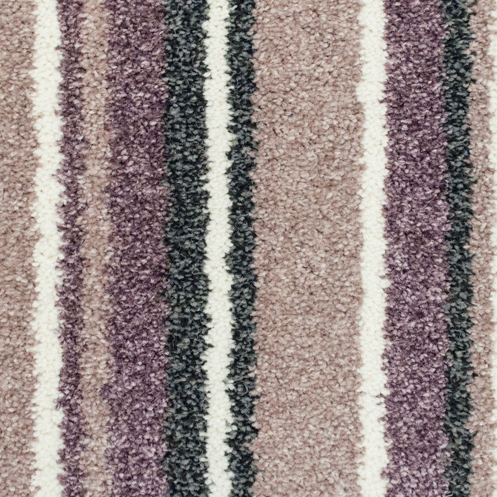 Made using a 2-ply tufting process, this carpet has a mix of colours in each tuft. In this carpet, the colours are rich purples and soft beiges, and contrastic stripes of greys, creams and beiges.