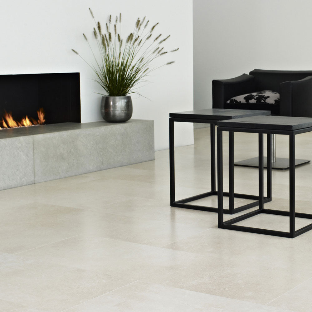 The Limestone White Pure Stone Laminate Flooring has a subtle colouring with soft beiges and creams in a realistic design.
