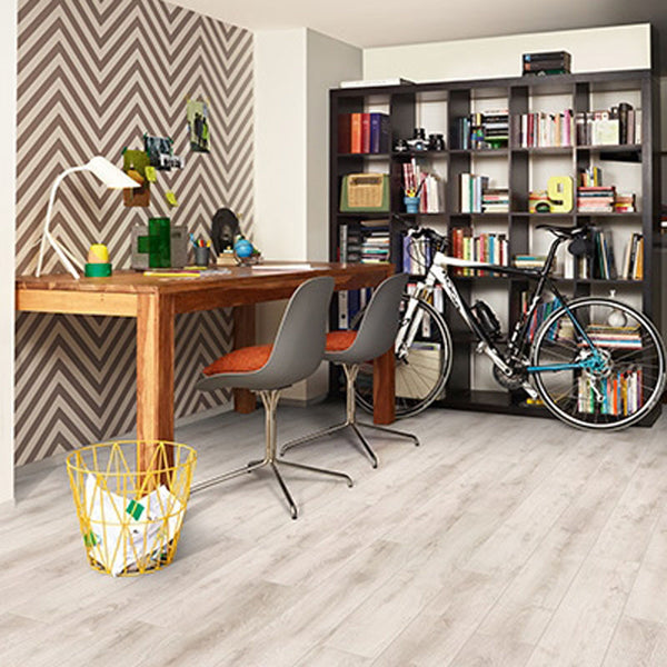 The pale grey colour and vintage oak design give you a floor with its own character, that matches contemporary and traditional room styles. Get a realistic look with sections of various gloss levels that combine to give your planks the 3D Wood Effect appearance of real depth. The life-like look is complemented by a True to Nature Touch finish created by an embossed in register process that matches the surface texture and printed grain pattern underneath.
