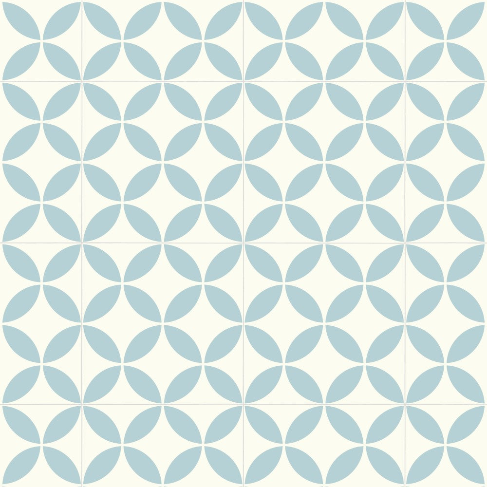 Create a realistic ceramic tile look with this vinyl’s pattern of 16.7cm x 16cm tiles. The geometric design uses light teal ovals to create a star and circle pattern that look amazing as a companion to many different room styles and furnishings.