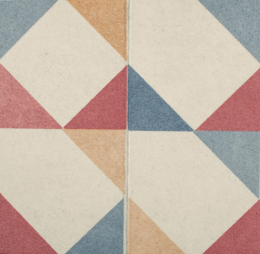 Triangles of colour on a white background give this vinyl a fun and eye catching design. The red, blue, yellow and orange shades in the 20cm by 20cm tiles provide a splash of colour and a seemingly random pattern. This vinyl with its matt finish is perfect for kitchens, bathroom, conservatories or even playrooms!