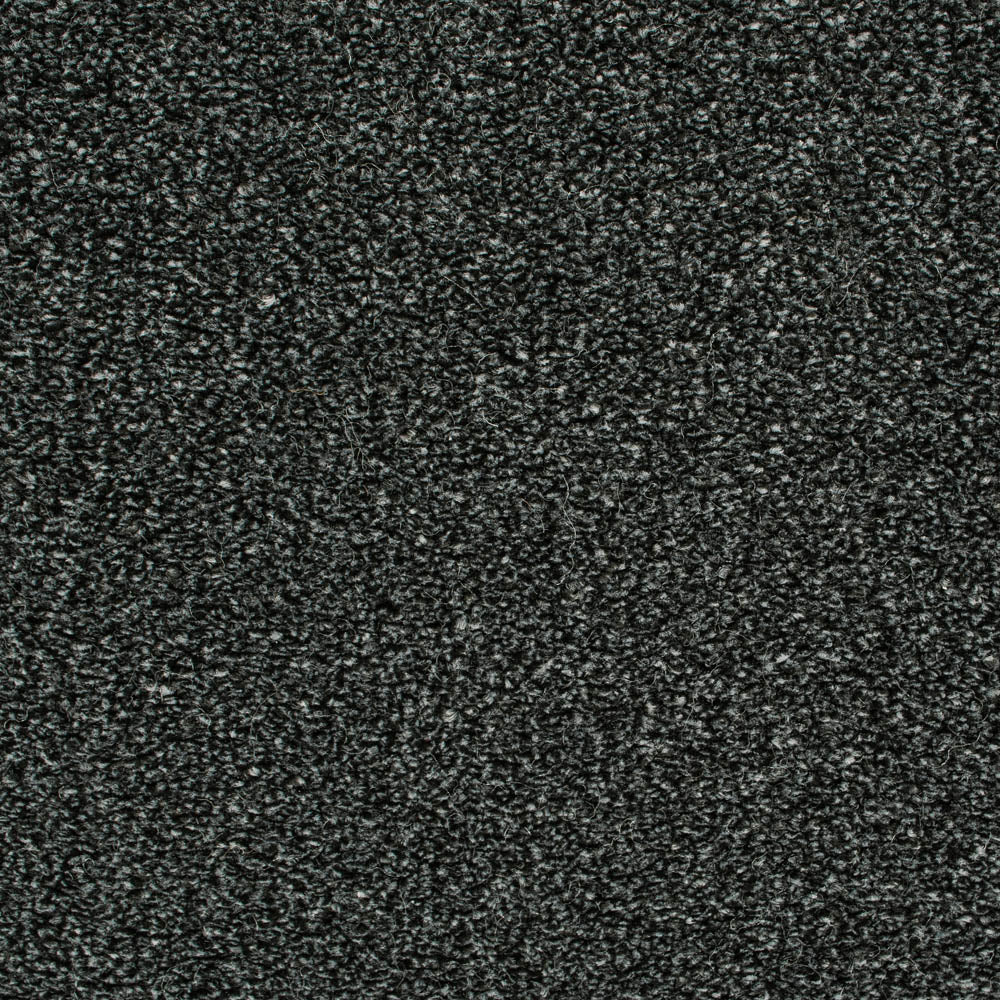 The deep black hue of this carpet has a rich heathered appearance with warm grey highlights. With its dark neutral shade, this carpet can be used with almost any room colour and looks fantastic with cool modern and warm traditional decors alike. A 16mm polypropylene pile gives this carpet an amazingly soft to the touch surface, that is hardwearing, stain resistant and can be cleaned with a dilute bleach solution.