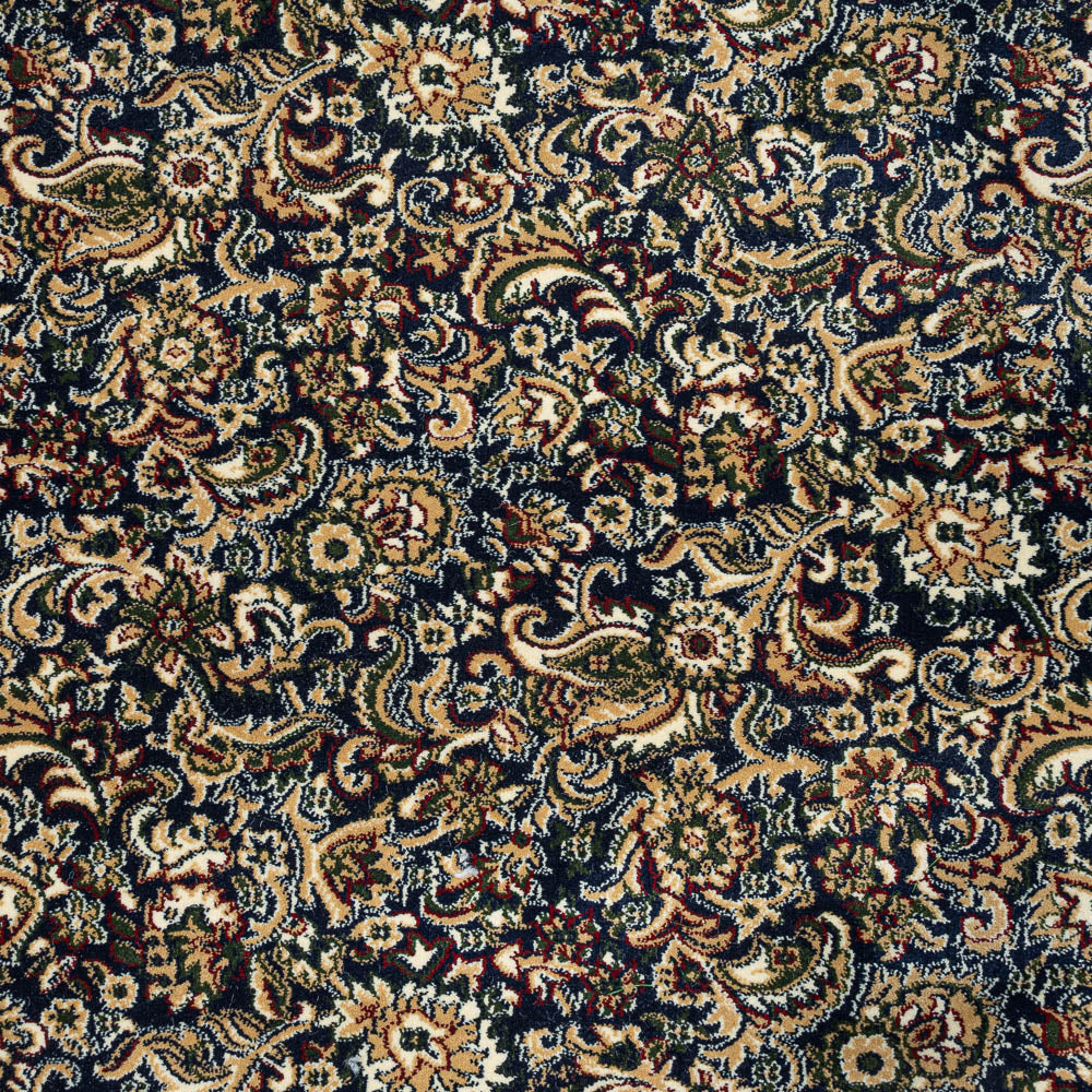 This dark Midnight Blue Jacobean Patterned Wilton Carpet adds a brilliantly luxurious feel to your living room or bedroom with its cosy and dense pile.