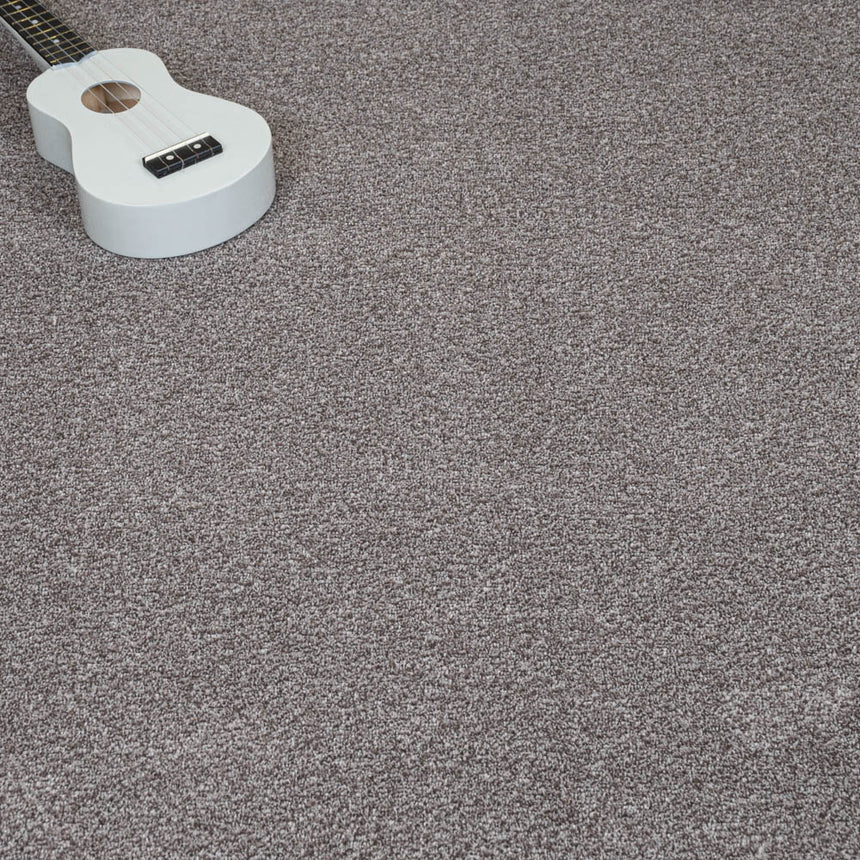 This carpet has a mix of soft grey and brown fibres in a 2-ply yarn. This creates a flecked appearance that adds depth to the overall colour. All this means is that the colour can blend well with a wider variety of room styles and colours than a plain carpet. This soft, neutral colour is perfect for a family room or a bedroom, it's a really relaxing hue that promotes a comfortable atmosphere.