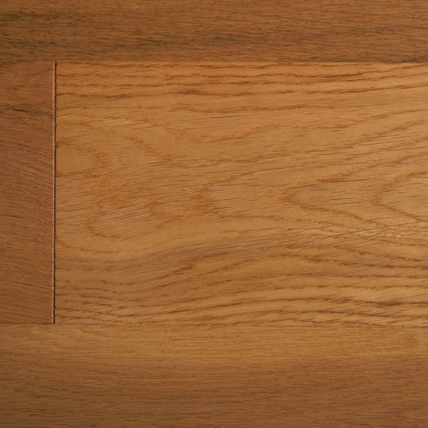 The oak has a very soft look, with a mid beige overall colour. It's very warm and homely, and the brush emphasised grain looks rustic and traditional. The oak is sourced from sustainable American forests, and comes with an FSC rating.