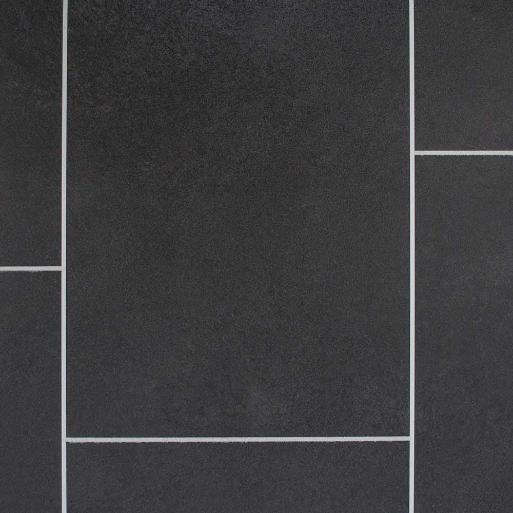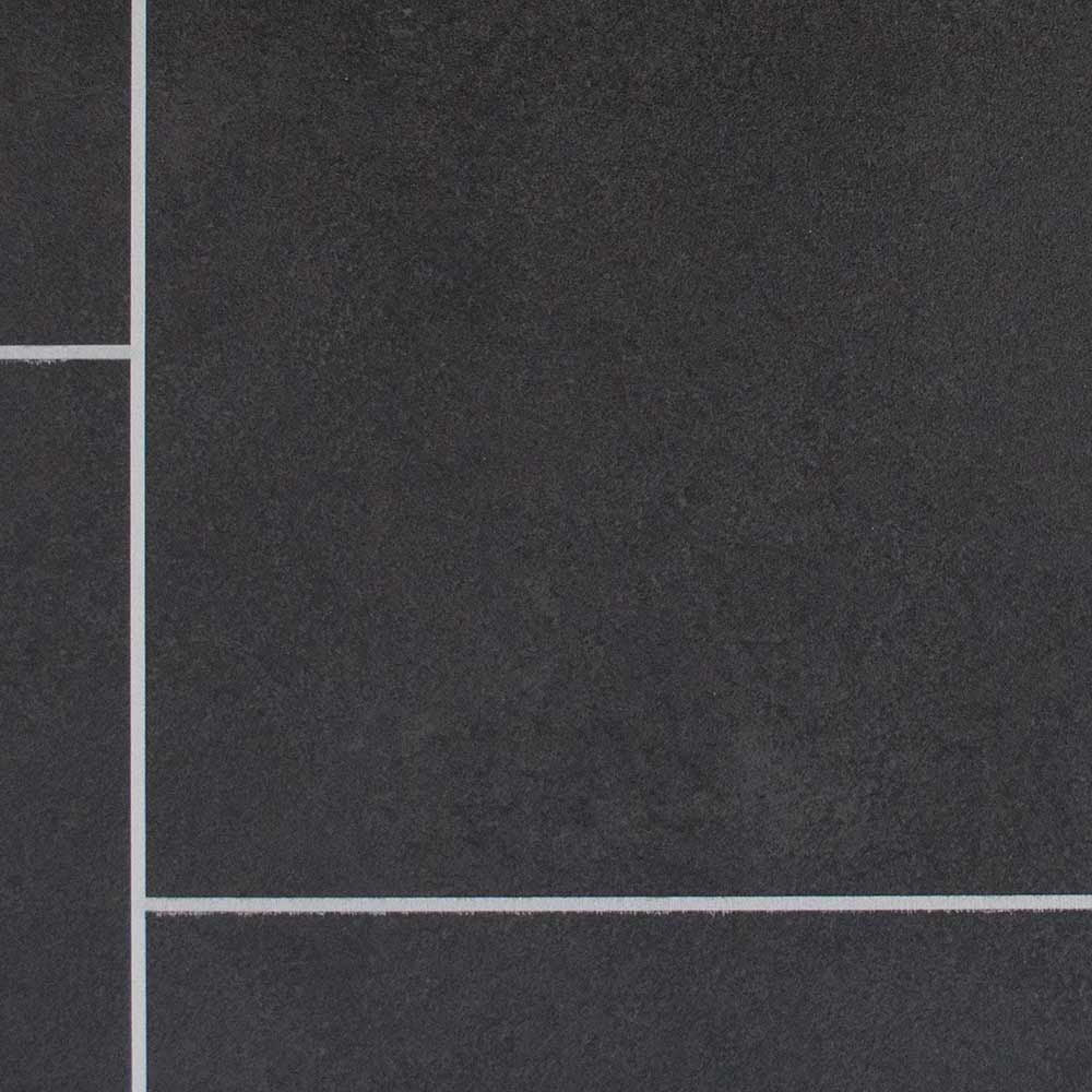 Stylish and modern black tiles with a silver grout line run down the length of this vinyl. The tiles have a realistic look with a matt finish, that looks great with a wide range of room styles and colours.