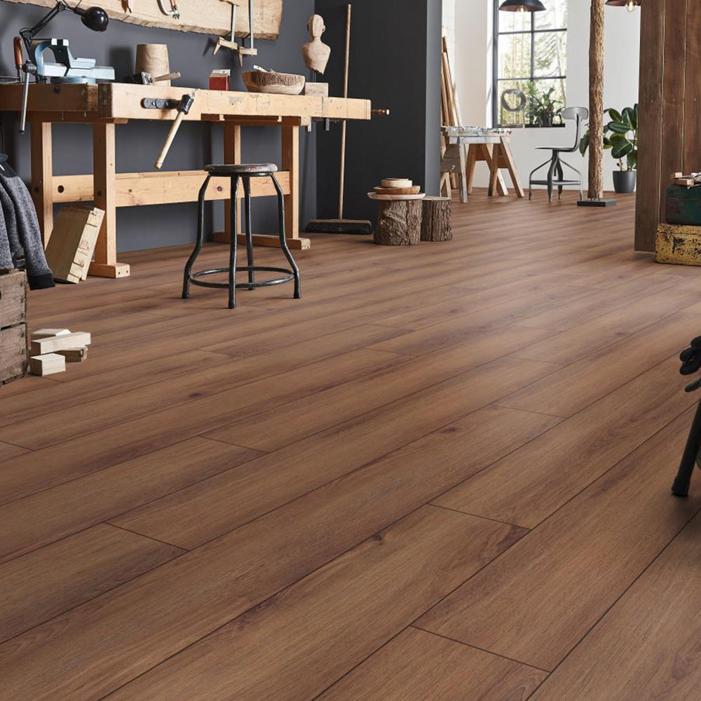 With this phenomenal 12mm thickness, this laminate is a brilliant choice for living rooms and dining rooms and even some commercial spaces. The textured embossed surface adds a superb feel that follows the pattern on each plank. Its hardwearing AC5 rating gives this laminate a robust and scratch resistant finish.