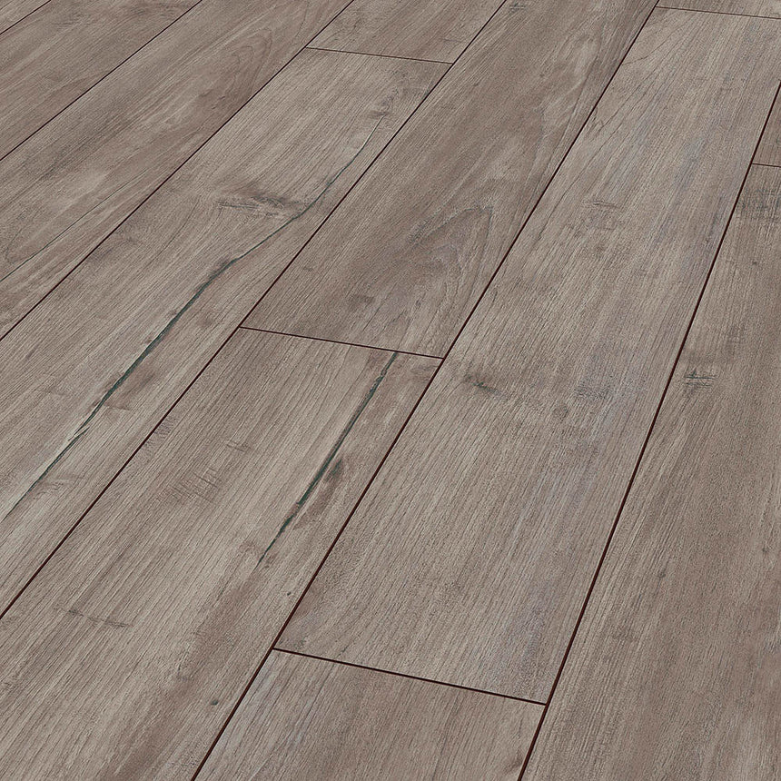 With its rich grey shades and detailed grain, this laminate has a versatile and realistic effect. This Swiss Krono laminate also features an embossed surface that adds a textured feel that matches the pattern beneath. The bevelled edges of the 1380mm x 193mm planks give them a classic appearance with a v-groove in the join.