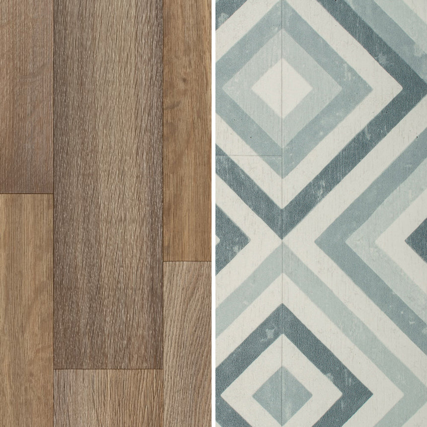Create a beautiful floor with the wide range of wood, tile and stone effects in our Nova Clearance Vinyl Flooring.