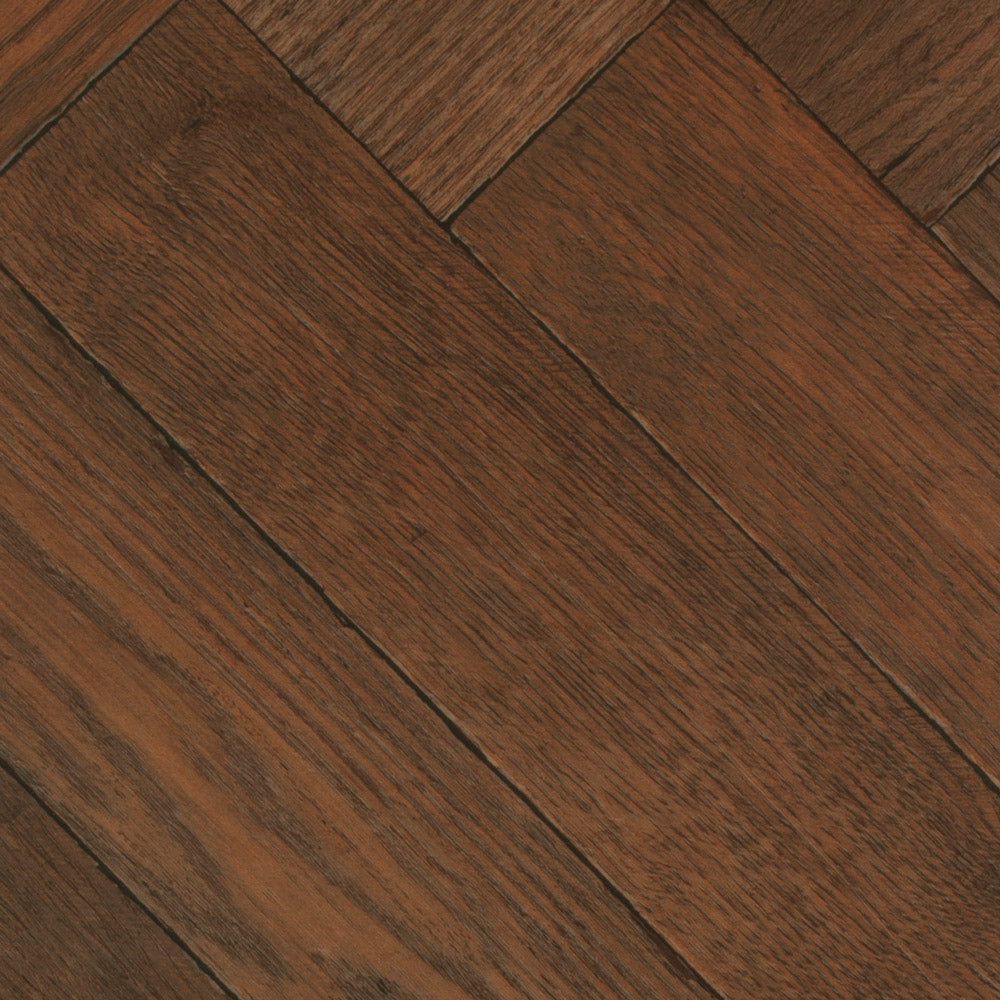 This dark brown wood effect is an Parquet look. This effect is a natural wood planks arranged in a herringbone pattern that would suit both modern and tradition kitchens.