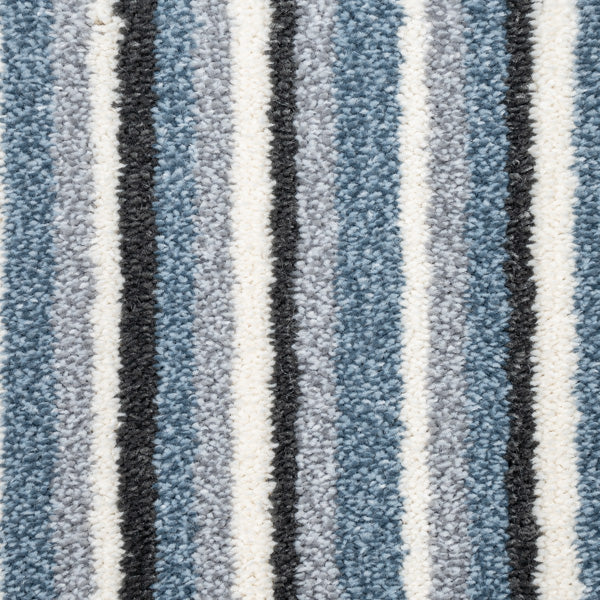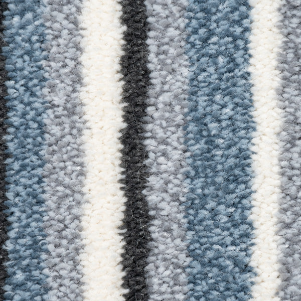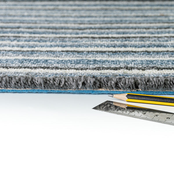This Ocean Stripes 38 Soft Noble Feltback Carpet gives you rooms a distinctive blue, grey and black striped look. Striped carpets look amazing in large or narrow rooms and can help rooms look longer or wider.